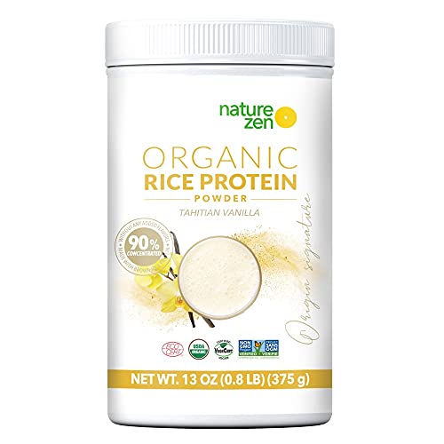 Nature Zen Organic Vegan Protein Powder, Tahitian Vanilla, Organic Rice Protein, Sugar Free, Dairy Free, Soy Free, Gluten Free, Naturally Non Gmo, Kosher, High In Fiber, Halal, 18 Servings, 13oz