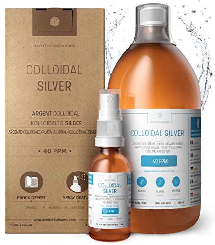 Premium Colloidal Silver 40ppm 34 Fl Oz ● Optimal Concentration Formula, Smaller Particles, Better Results ● Laboratory Certified ● Liquid Silver Made In Eu ● Free Spray Bottle To Fill & Ebook